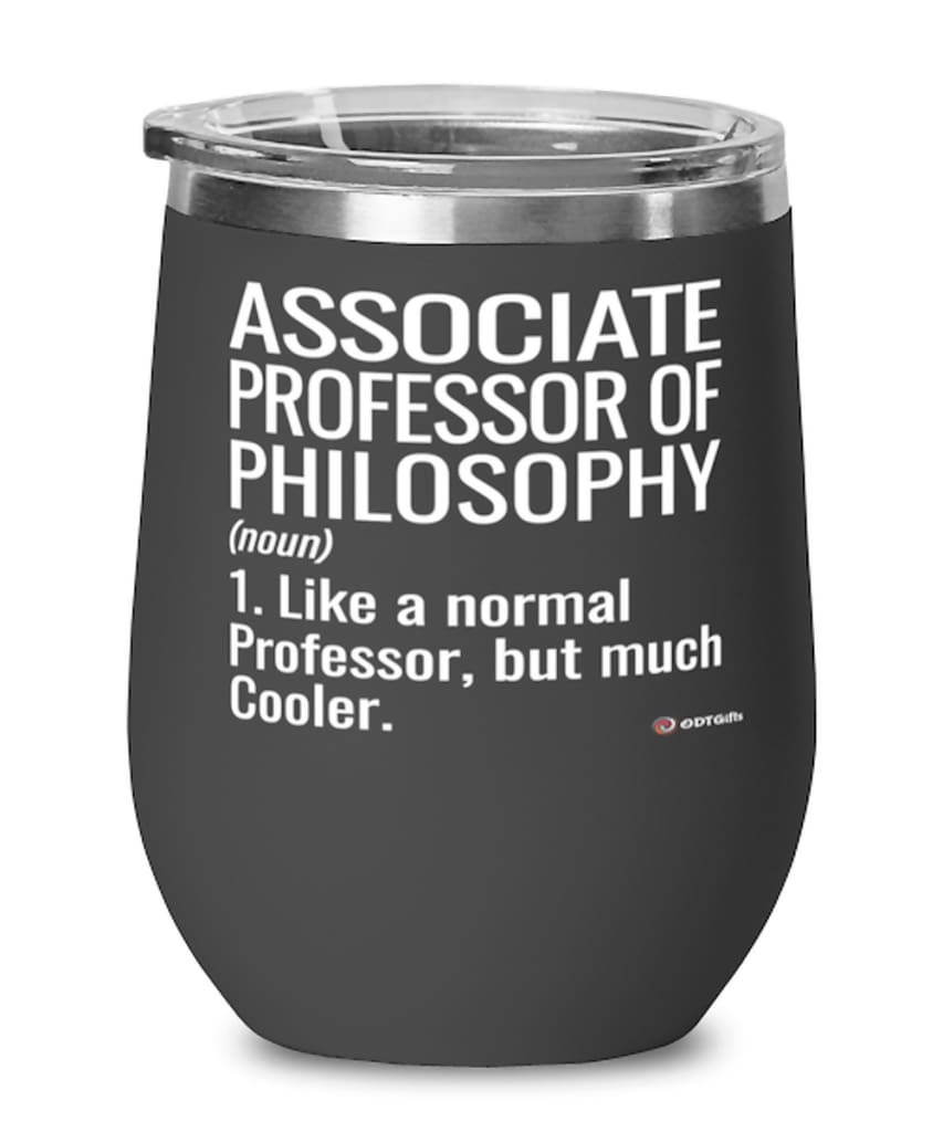 Funny Associate Professor of Philosophy Wine Glass Like A Normal Professor But Much Cooler 12oz Stainless Steel Black