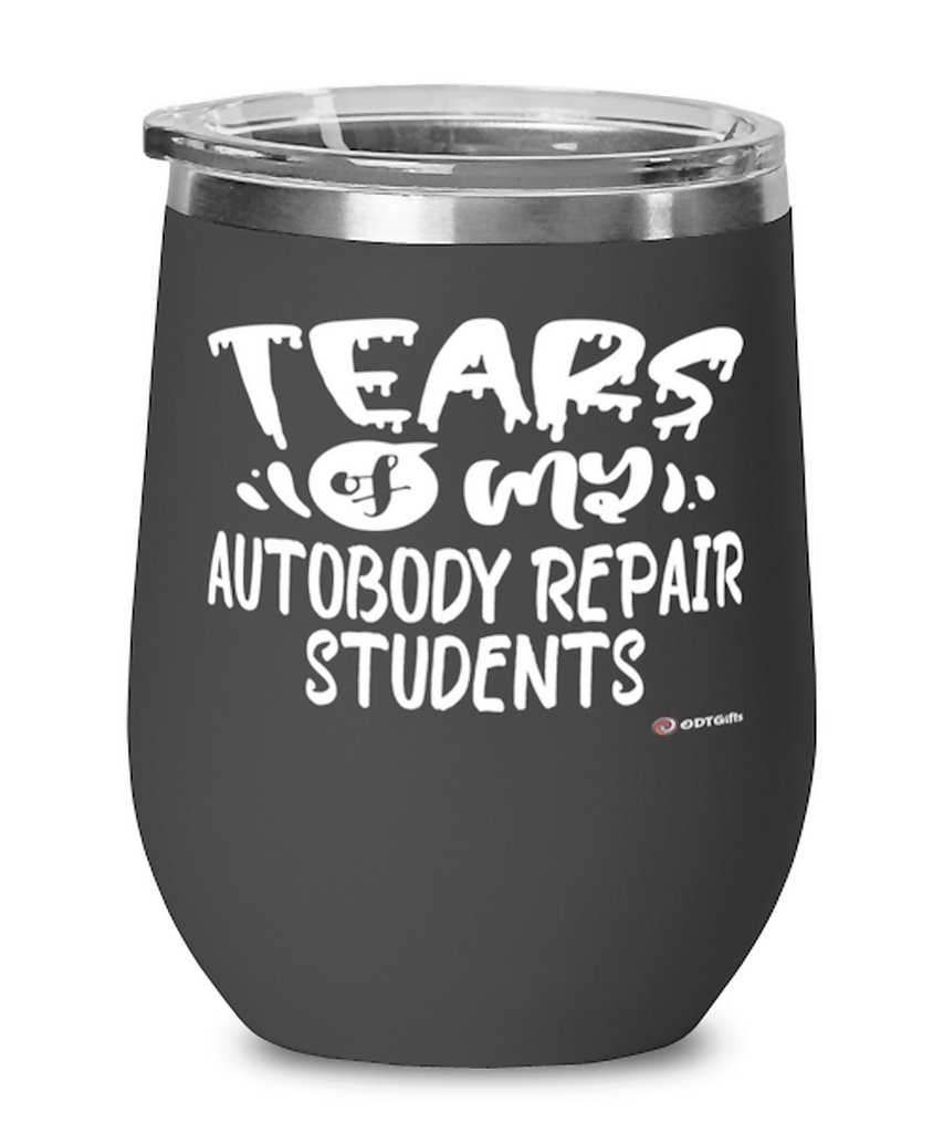 Funny Autobody Repair Professor Teacher Wine Glass Tears Of My Autobody Repair Students 12oz Stainless Steel Black