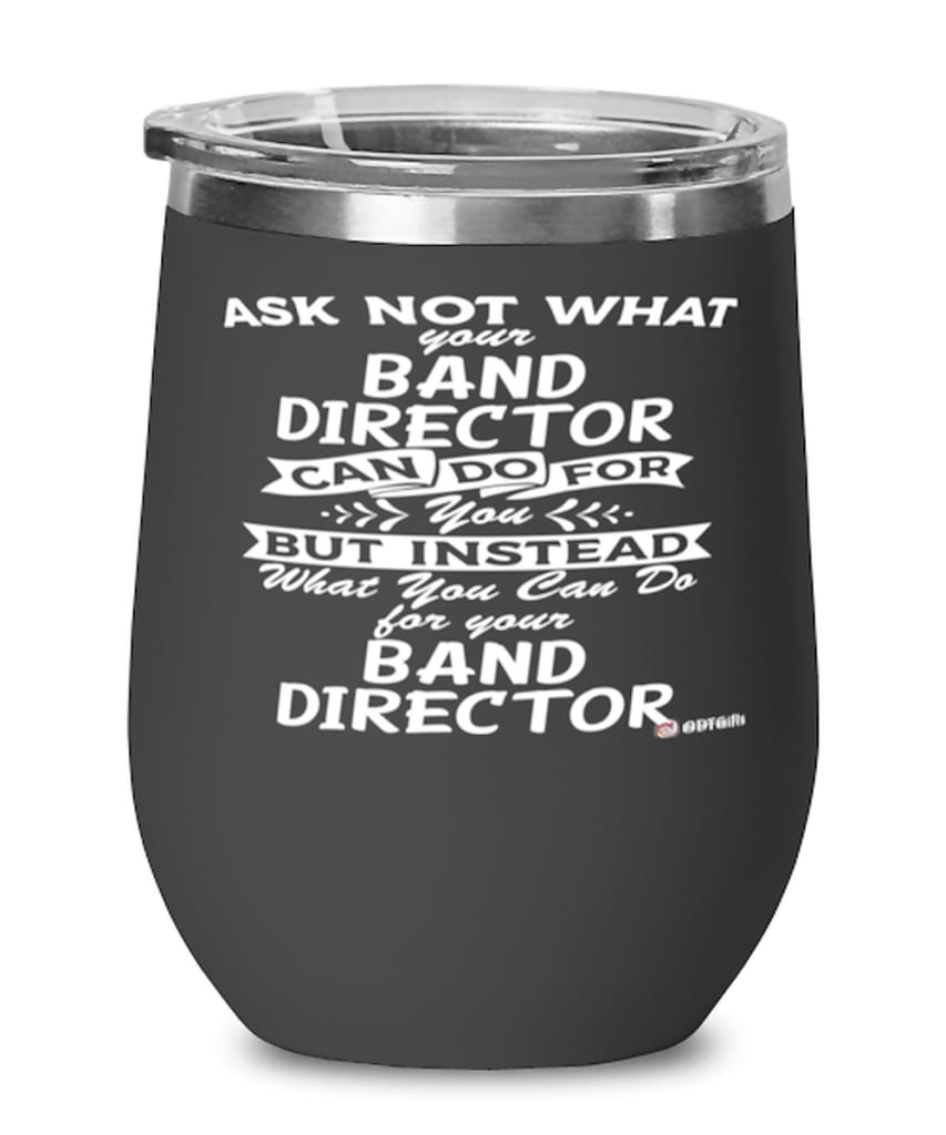 Funny Band Director Wine Glass Ask Not What Your Band Director Can Do For You 12oz Stainless Steel Black