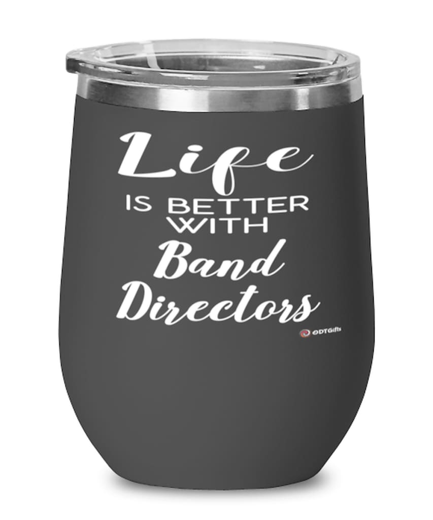 A beautiful stainless steel powder-coated stemless wine glass with a lid for Band Director. It's the perfect gift for wine drinkers! This wine tumbler has a double-wall vacuum insulated for hot and cold liquids, and we...
