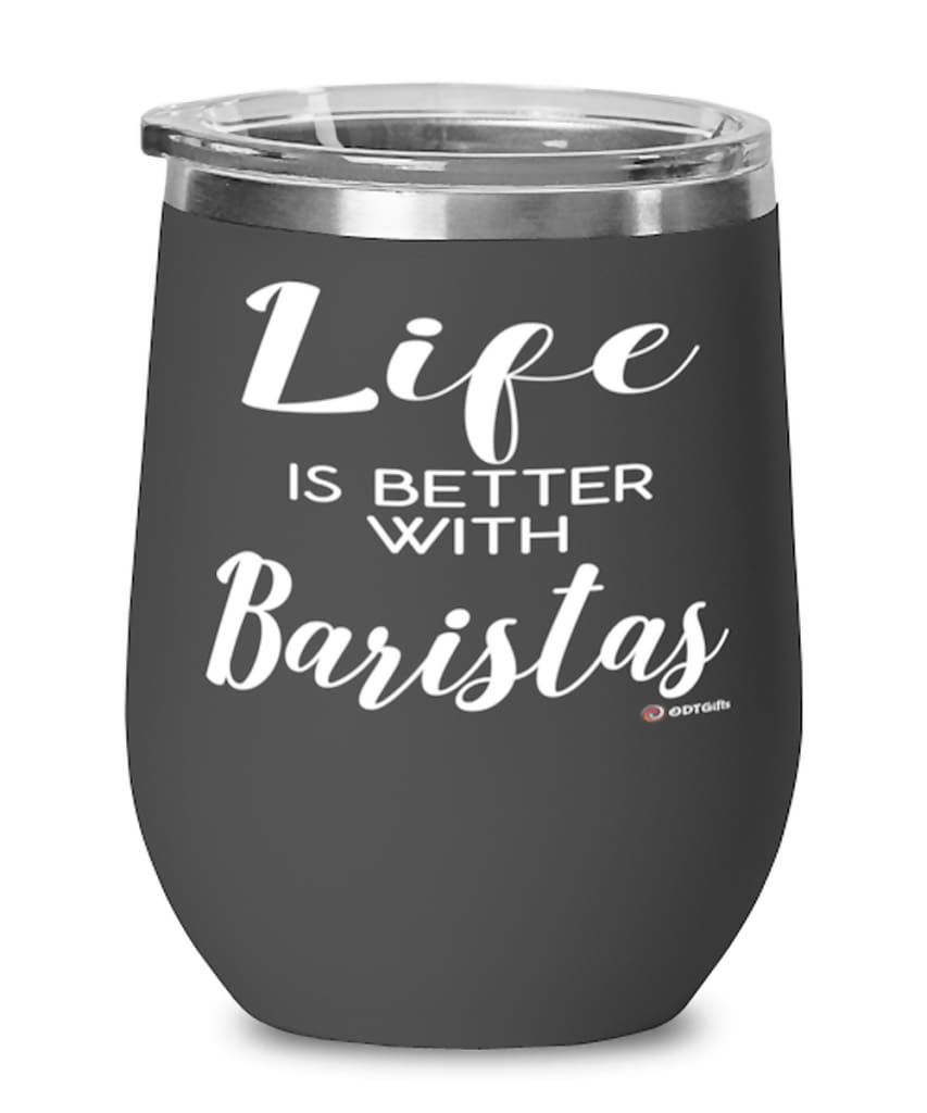 Funny Barista Wine Glass Life Is Better With Baristas 12oz Stainless Steel Black