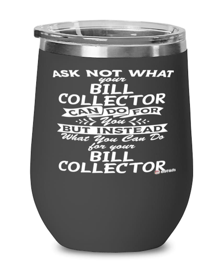 Funny Bill Collector Wine Glass Ask Not What Your Bill Collector Can Do For You 12oz Stainless Steel Black
