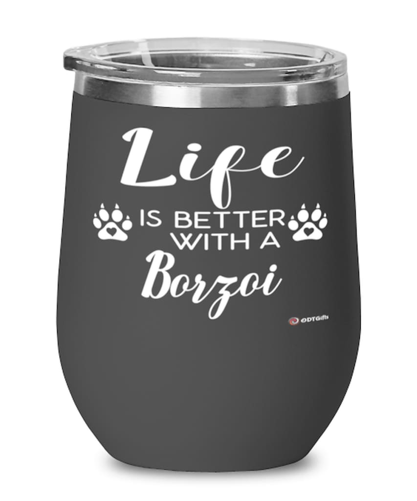 Funny Borzoi Dog Wine Glass Life Is Better With A Borzoi 12oz Stainless Steel
