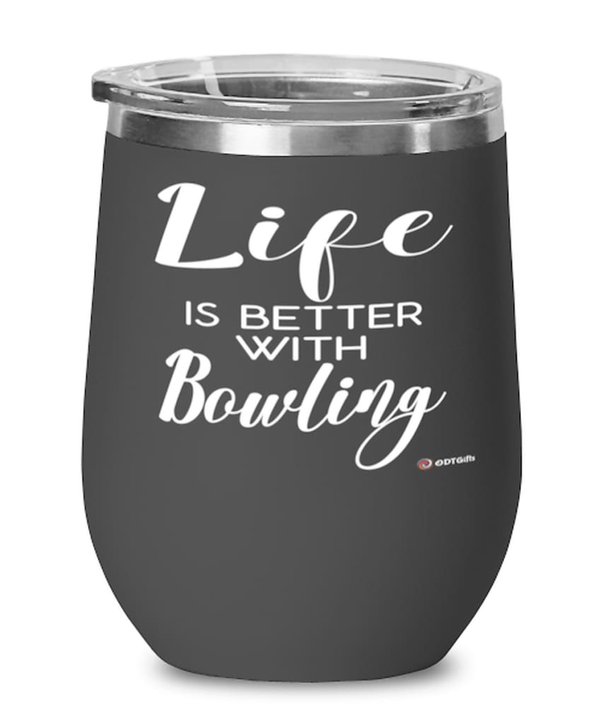 Funny Bowling Wine Glass Life Is Better With Bowling 12oz Stainless Steel Black