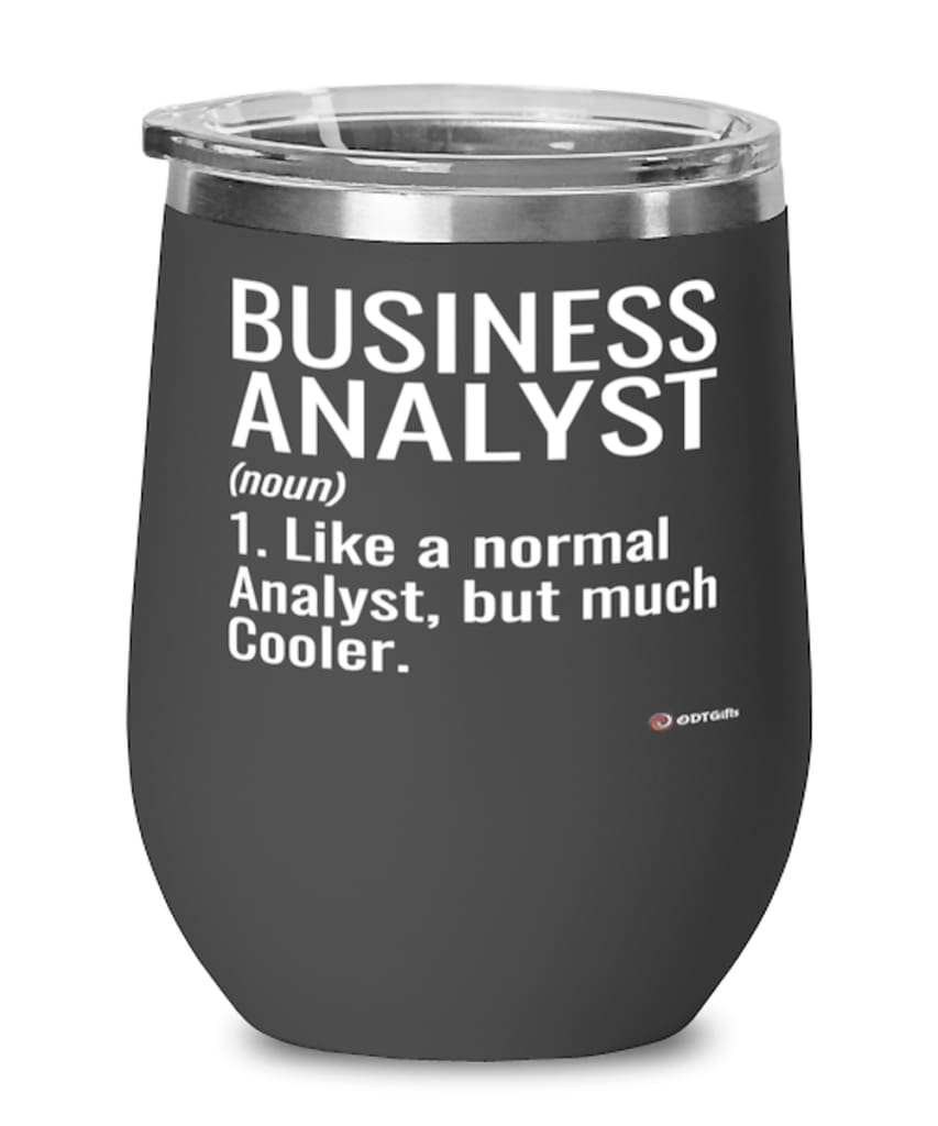 A beautiful stainless steel powder-coated stemless wine glass with a lid for Business Analyst. It's the perfect gift for wine drinkers! This wine tumbler has a double-wall vacuum insulated for hot and cold liquids, and we...