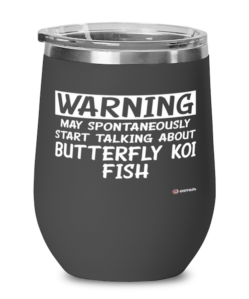 Funny Butterfly Koi Wine Glass Warning May Spontaneously Start Talking About Butterfly Koi Fish 12oz Stainless Steel Black
