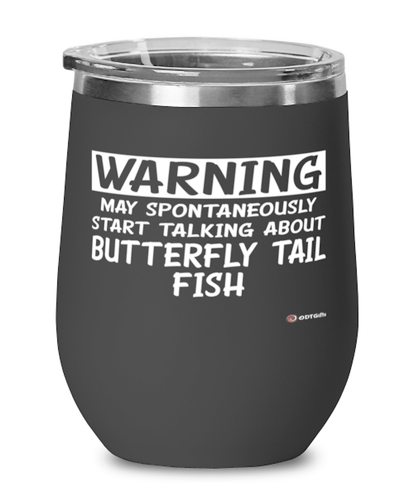 Funny Butterfly Tail Wine Glass Warning May Spontaneously Start Talking About Butterfly Tail Fish 12oz Stainless Steel Black