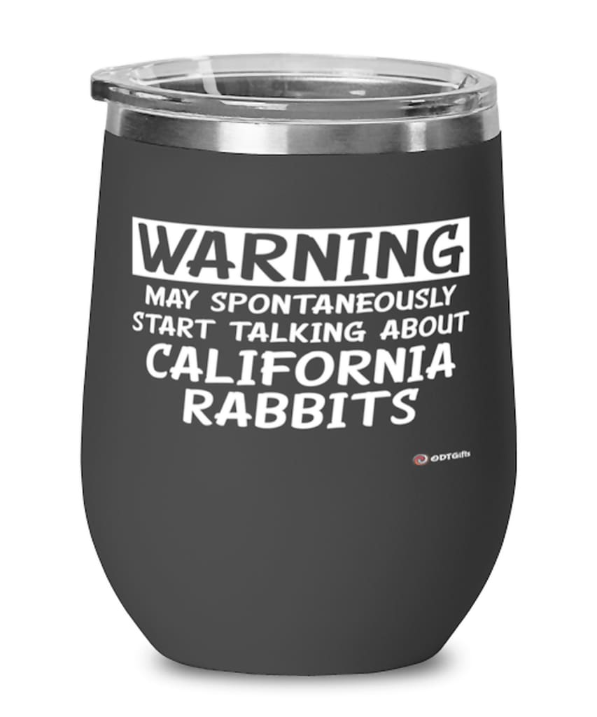 Funny California Rabbit Wine Glass Warning May Spontaneously Start Talking About California Rabbits 12oz Stainless Steel Black