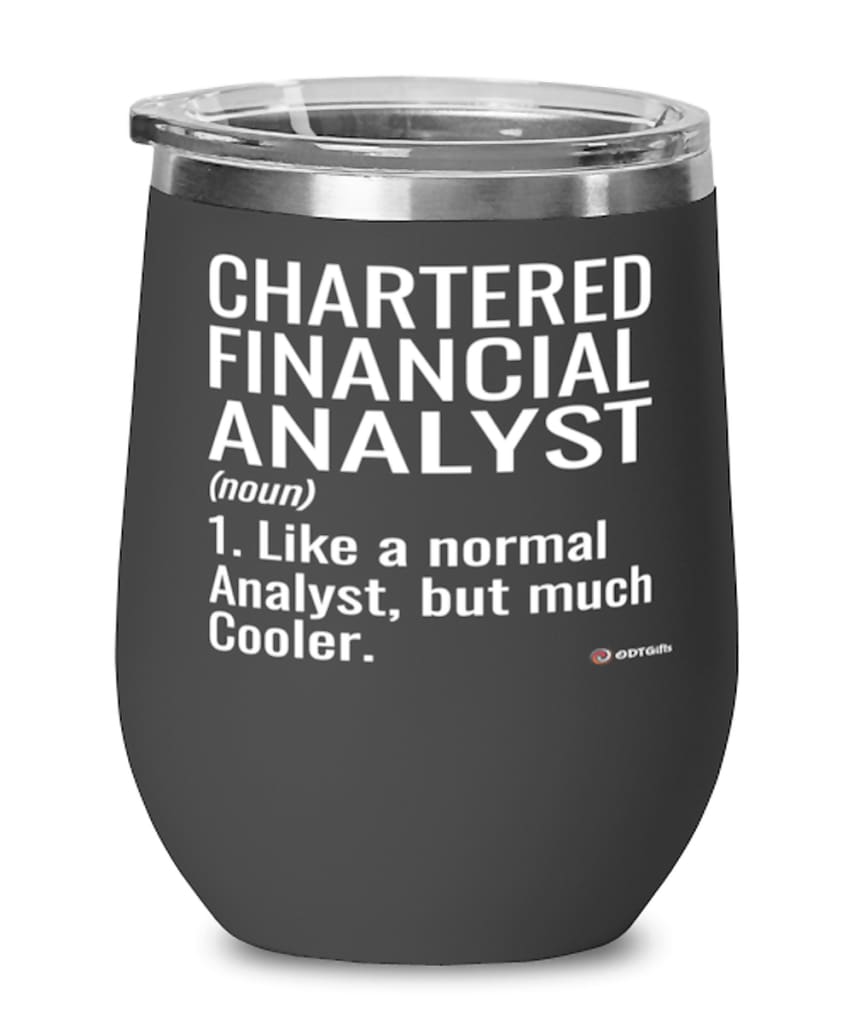 A beautiful stainless steel powder-coated stemless wine glass with a lid for Chartered Financial Analyst. It's the perfect gift for wine drinkers! This wine tumbler has a double-wall vacuum insulated for hot and cold liquids, and...