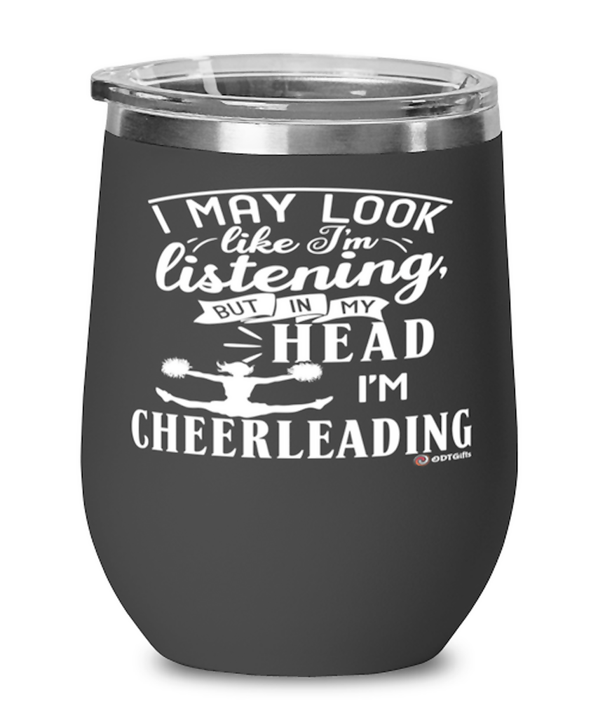 Funny Cheerleader Wine Glass I May Look Like I'm Listening But In My Head I'm Cheerleading 12oz Stainless Steel Black