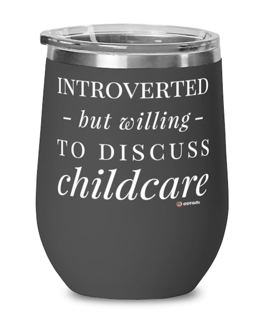 Funny Childcare Worker Wine Glass Introverted But Willing To Discuss Childcare 12oz Stainless Steel Black