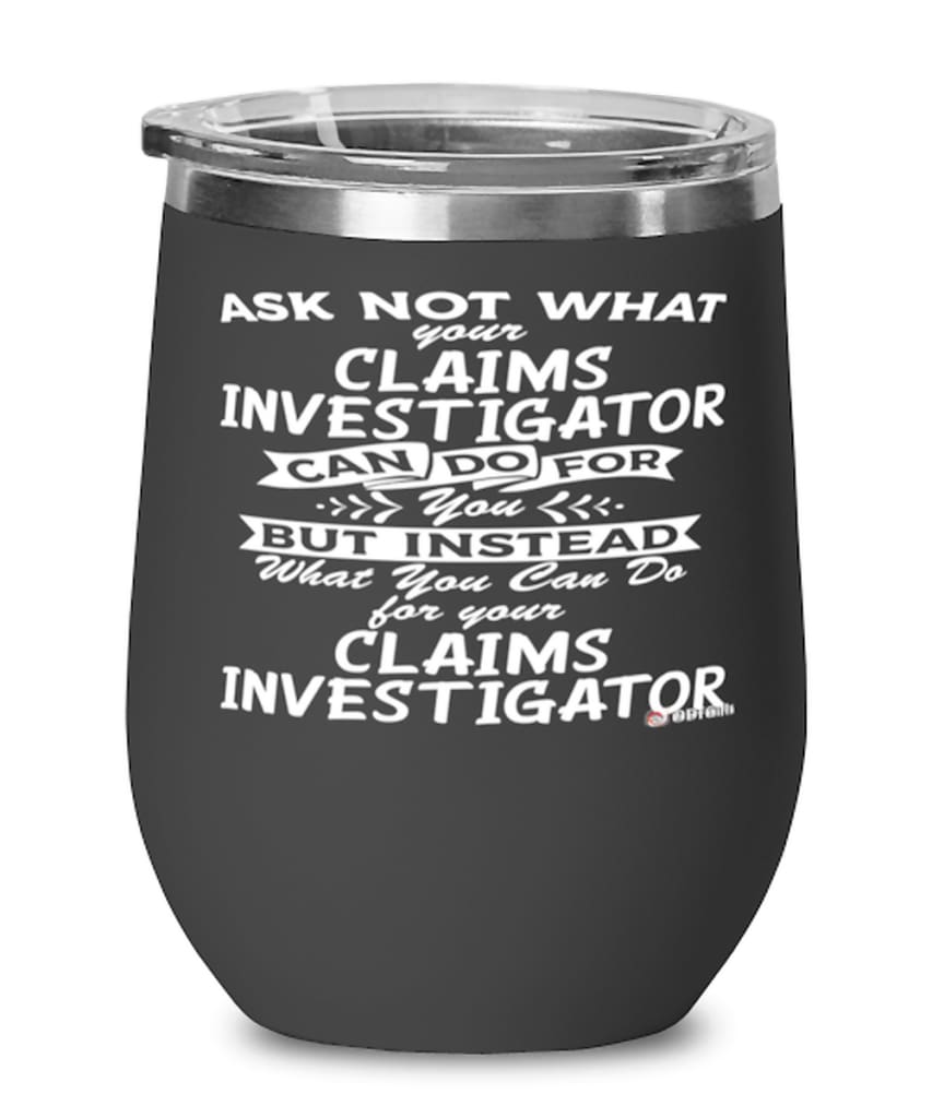 Funny Claims Investigator Wine Glass Ask Not What Your Claims Investigator Can Do For You 12oz Stainless Steel Black