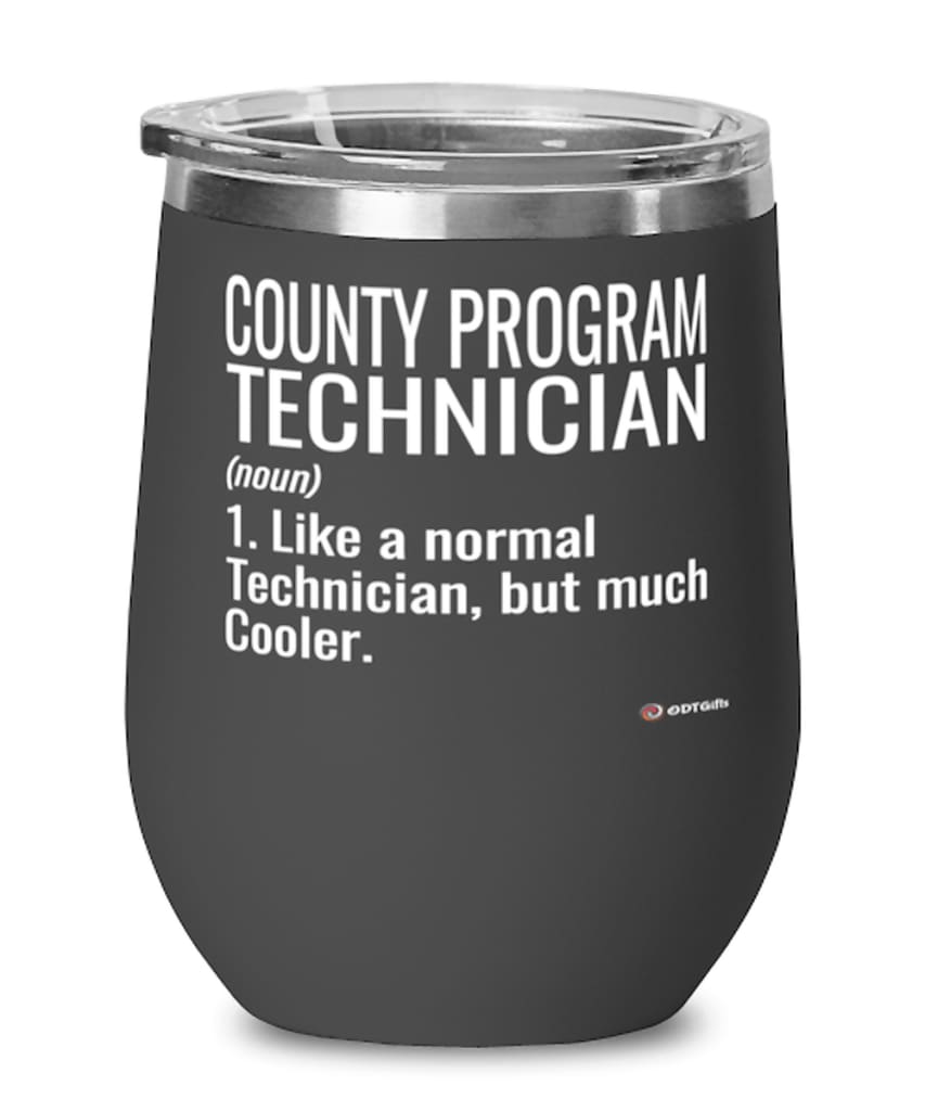 A beautiful stainless steel powder-coated stemless wine glass with a lid for County Program Technician. It's the perfect gift for wine drinkers! This wine tumbler has a double-wall vacuum insulated for hot and cold liquids, and...