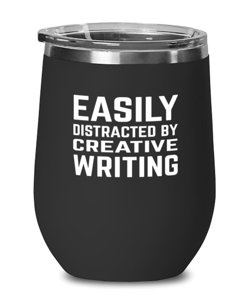 Funny Creative Writer Wine Tumbler Easily Distracted By Creative Writing Stemless Wine Glass 12oz Stainless Steel