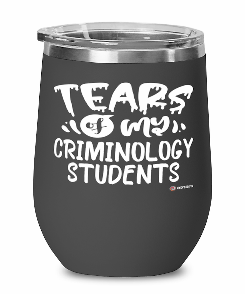 A beautiful stainless steel powder-coated stemless wine glass with a lid for Criminology Professor Teacher. It's the perfect gift for wine drinkers! This wine tumbler has a double-wall vacuum insulated for hot and cold liquids, and...