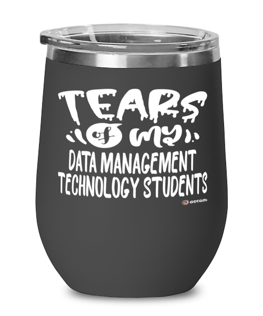 A beautiful stainless steel powder-coated stemless wine glass with a lid for Data Management Technology Professor Teacher. It's the perfect gift for wine drinkers! This wine tumbler has a double-wall vacuum insulated for hot and cold...