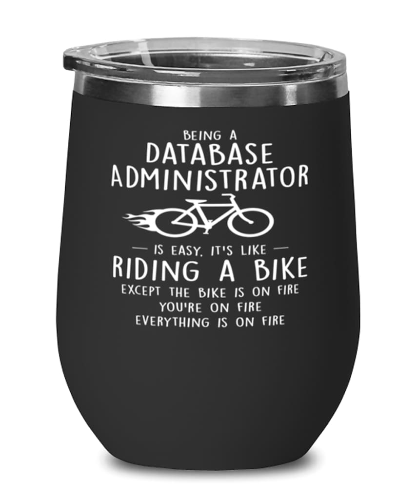 Funny Database Administrator Wine Glass Being A Database Administrator Is Easy It's Like Riding A Bike Except 12oz Stainless Steel Black