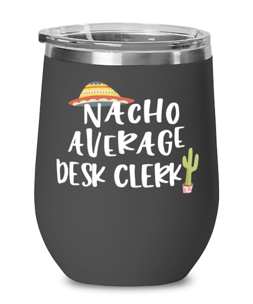 Funny Desk Clerk Wine Tumbler Nacho Average Desk Clerk Wine Glass Stemless 12oz Stainless Steel