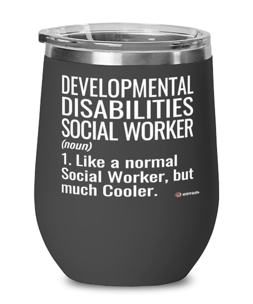 A beautiful stainless steel powder-coated stemless wine glass with a lid for Developmental Disabilities Social Worker. It's the perfect gift for wine drinkers! This wine tumbler has a double-wall vacuum insulated for hot and cold liquids,...