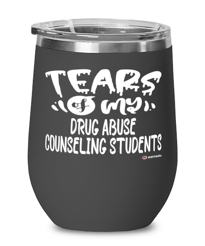 A beautiful stainless steel powder-coated stemless wine glass with a lid for Drug Abuse Counseling Professor Teacher. It's the perfect gift for wine drinkers! This wine tumbler has a double-wall vacuum insulated for hot and cold...
