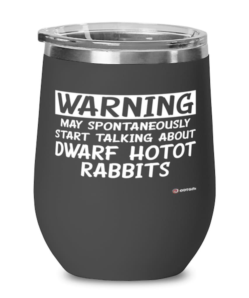Funny Dwarf Hotot Rabbit Wine Glass Warning May Spontaneously Start Talking About Dwarf Hotot Rabbits 12oz Stainless Steel Black