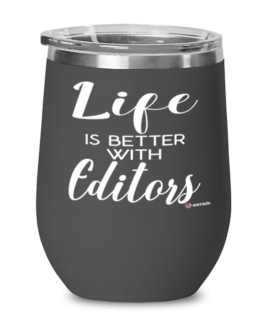 Funny Editor Wine Glass Life Is Better With Editors 12oz Stainless Steel Black