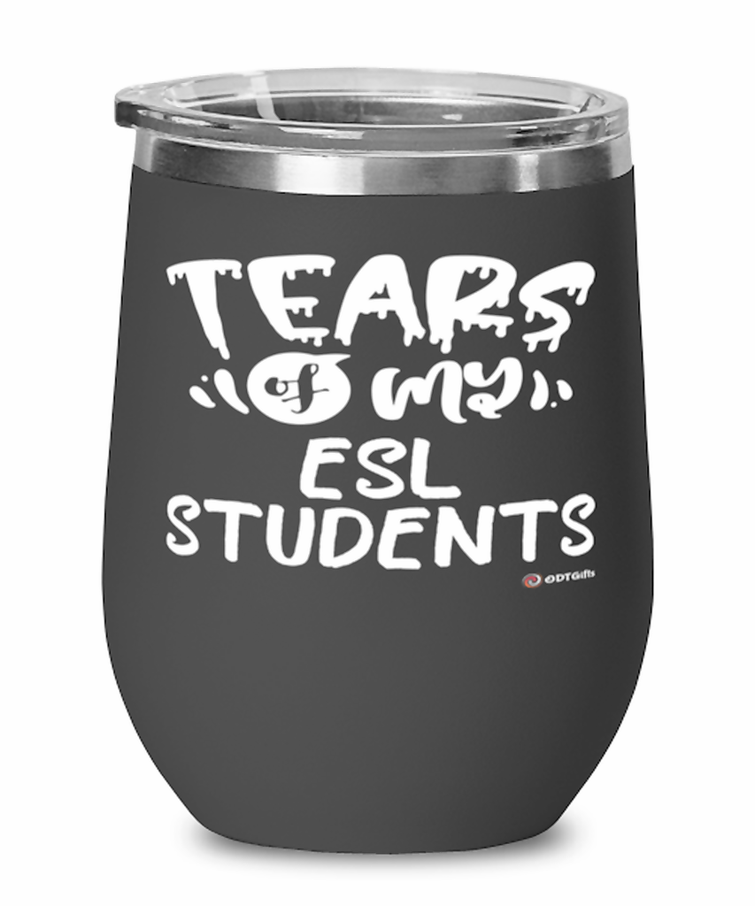 Funny ESL Teacher Wine Glass Tears Of My ESL Students 12oz Stainless Steel Black