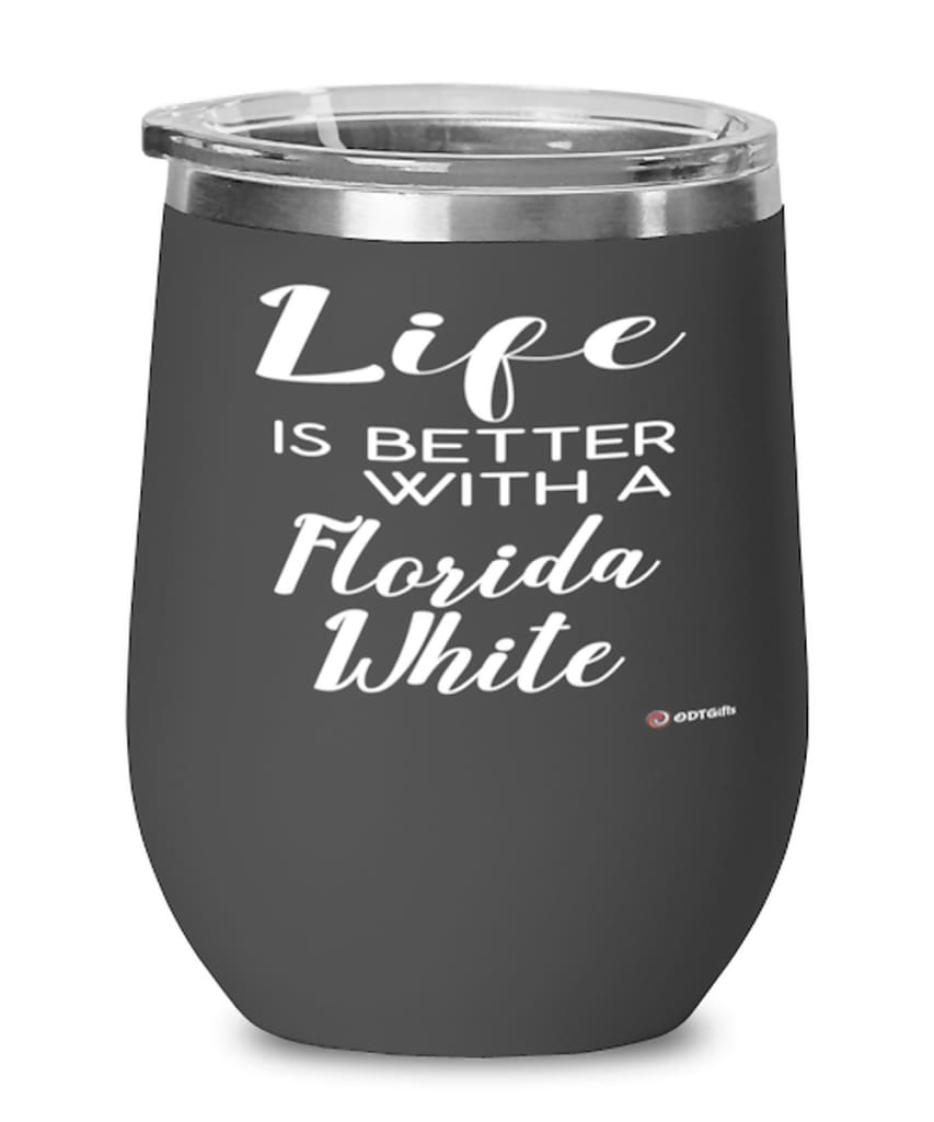 - Florida white Vacuum Insulated Stemless Wine Glass w/Lid.