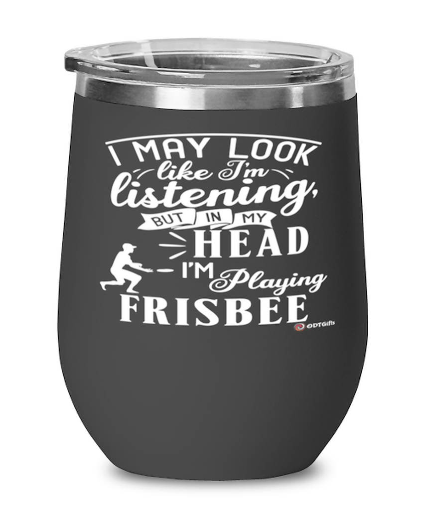 Funny Frisbee Wine Glass I May Look Like I'm Listening But In My Head I'm Playing Frisbee 12oz Stainless Steel Black