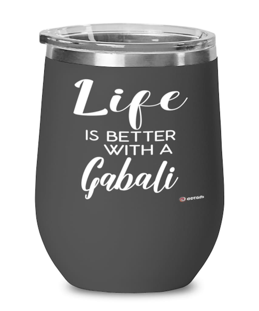 A beautiful stainless steel powder-coated stemless wine glass with a lid for Gabali. It's the perfect gift for wine drinkers! This wine tumbler has a double-wall vacuum insulated for hot and cold liquids, and we engrave each tumbler with top-of-the-line laser technology to ensure precise design and durability. These are perfect party favors for your next event, wedding, family reunion, pool party, picnic, BBQ's, baby shower, birthday, and so much more. Hand wash only, not dishwasher or microwave safe.