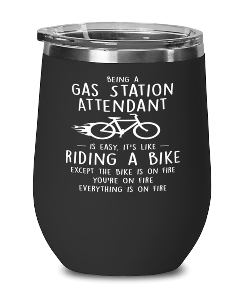 Funny Gas Station Attendant Wine Glass Being A Gas Station Attendant Is Easy It's Like Riding A Bike Except 12oz Stainless Steel Black