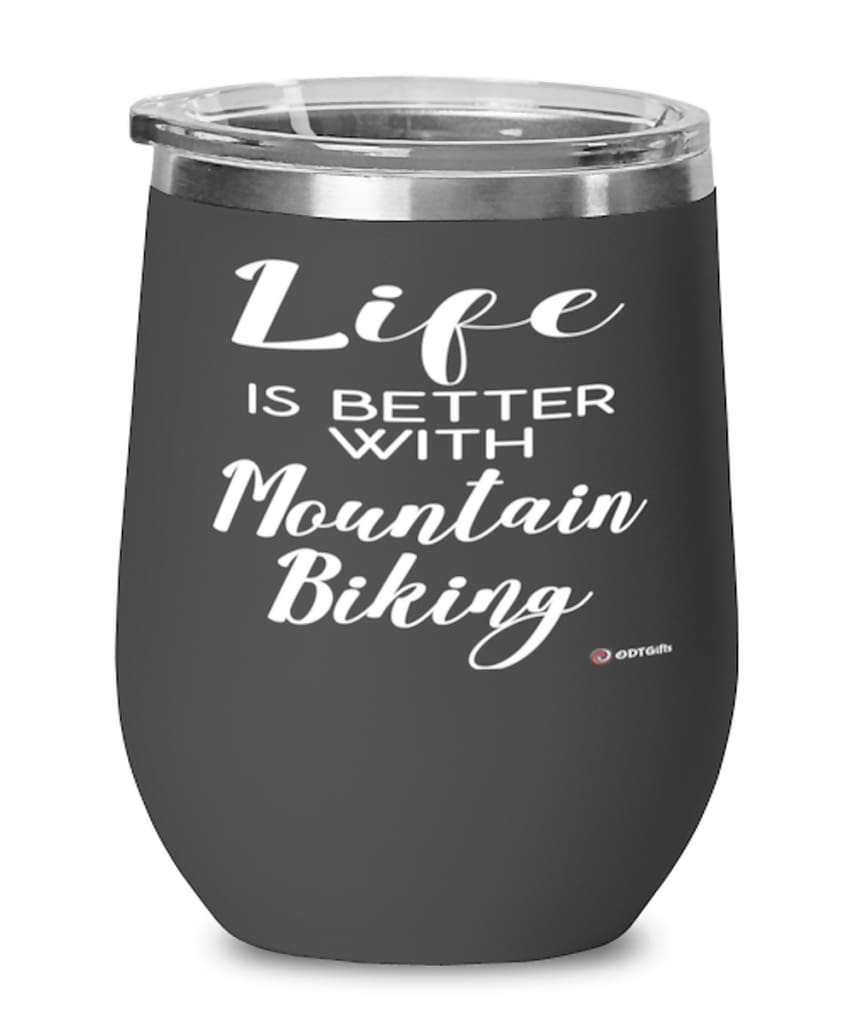 - Mountain biking Vacuum Insulated Stemless Wine Glass w/Lid.