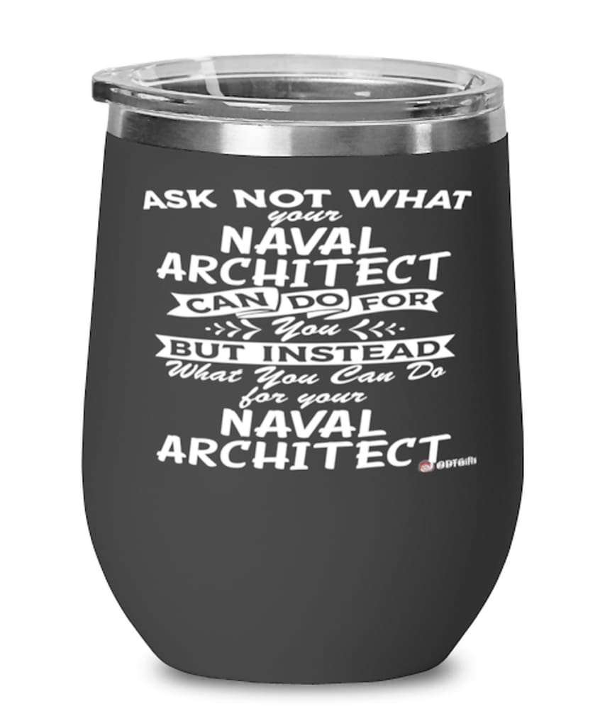 Funny Naval Architect Wine Glass Ask Not What Your Naval Architect Can Do For You 12oz Stainless Steel Black