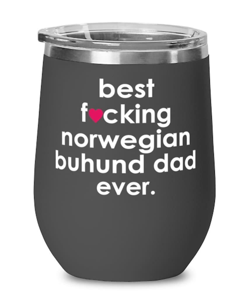 Funny Norwegian Buhund Dog Wine Glass B3st F-cking Norwegian Buhund Dad Ever 12oz Stainless Steel Black
