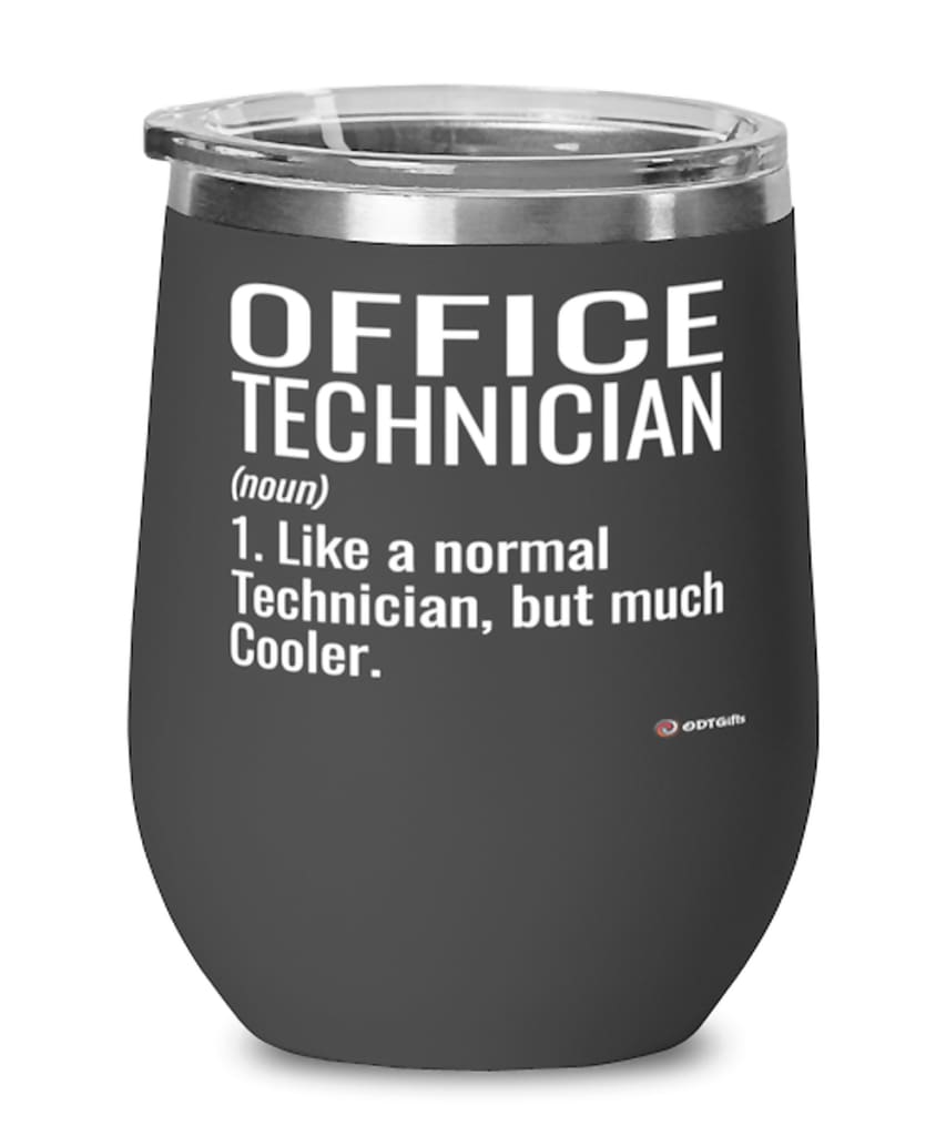 A beautiful stainless steel powder-coated stemless wine glass with a lid for Office Technician. It's the perfect gift for wine drinkers! This wine tumbler has a double-wall vacuum insulated for hot and cold liquids, and we...
