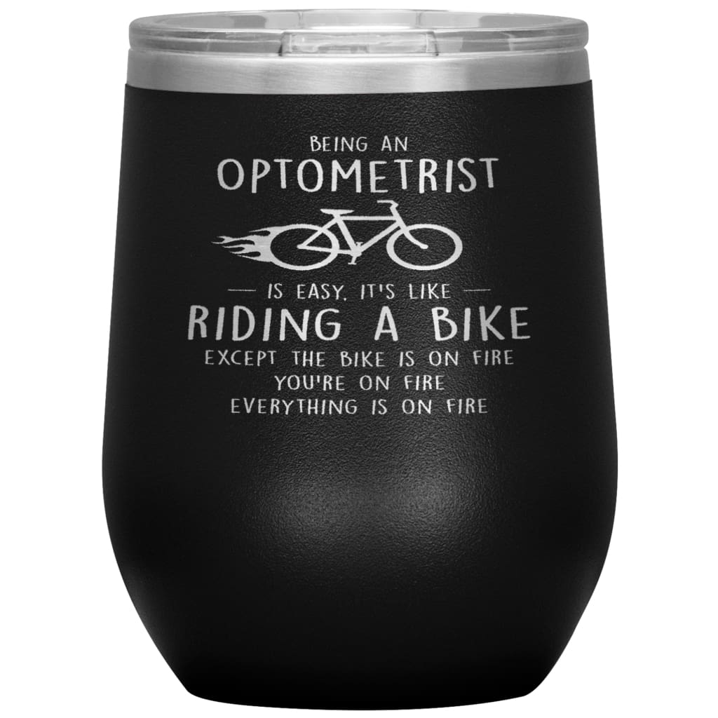 Funny Optometrist Wine Glass Being An Optometrist Is Easy Like Riding A Bike Except The Bike Is On Fire Laser Etched 12oz Stainless Steel Tumbler12oz. Stemless Wine Tumblers feature stainless steel double-wall construction, vacuum insulated for...