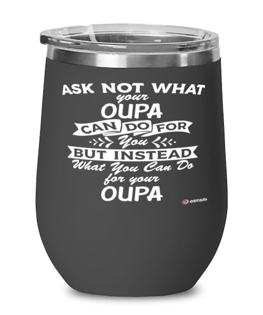 A beautiful stainless steel powder-coated stemless wine glass with a lid for Oupa. It's the perfect gift for wine drinkers! This wine tumbler has a double-wall vacuum insulated for hot and cold liquids, and we engrave...