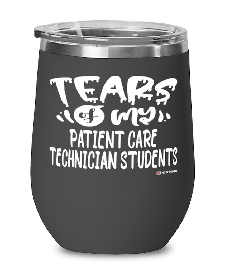 A beautiful stainless steel powder-coated stemless wine glass with a lid for Patient Care Technician Professor Teacher. It's the perfect gift for wine drinkers! This wine tumbler has a double-wall vacuum insulated for hot and cold...