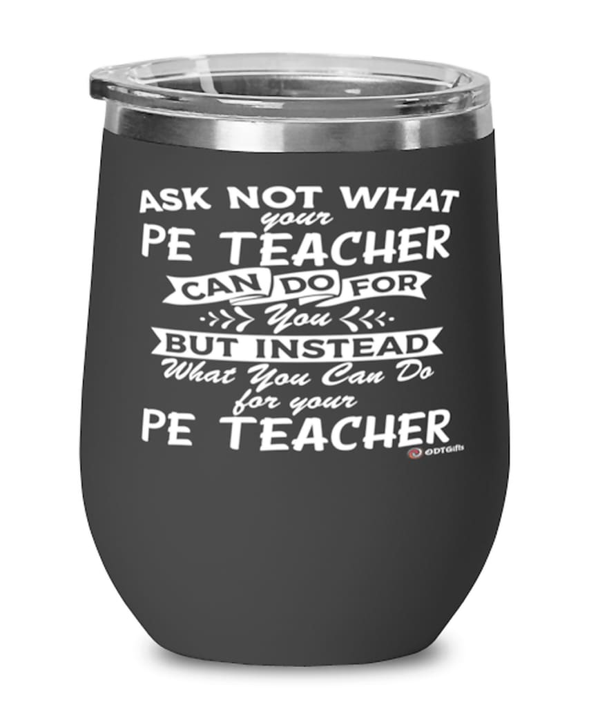 Funny PE Teacher Wine Glass Ask Not What Your PE Teacher Can Do For You 12oz Stainless Steel Black