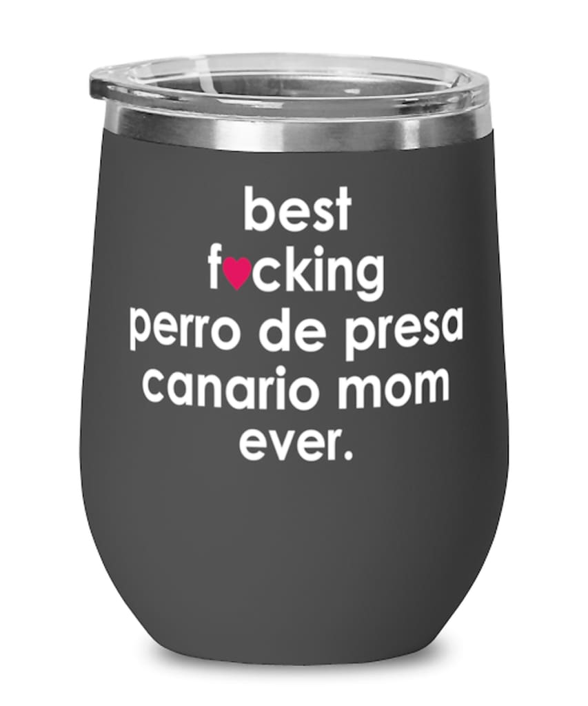 Funny Perro De Presa Canario Dog Wine Glass B3st F-cking Perro De Presa Canario Mom Ever 12oz Stainless Steel Black