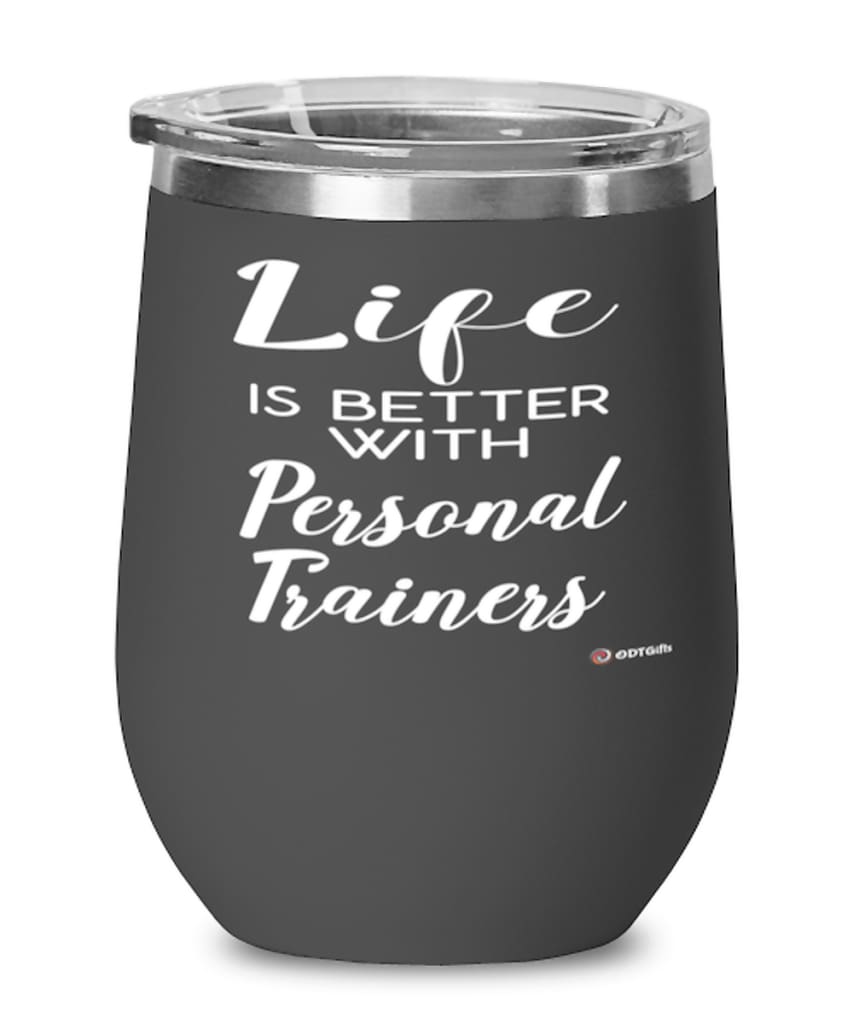 Funny Personal Trainer Wine Glass Life Is Better With Personal Trainers 12oz Stainless Steel Black