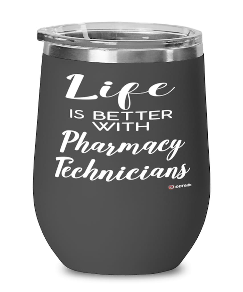 Funny Pharmacy Technician Wine Glass Life Is Better With Pharmacy Technicians 12oz Stainless Steel Black