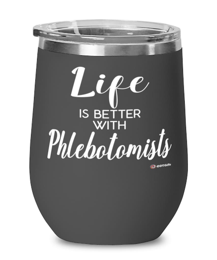 Funny Phlebotomist Wine Glass Life Is Better With Phlebotomists 12oz Stainless Steel Black
