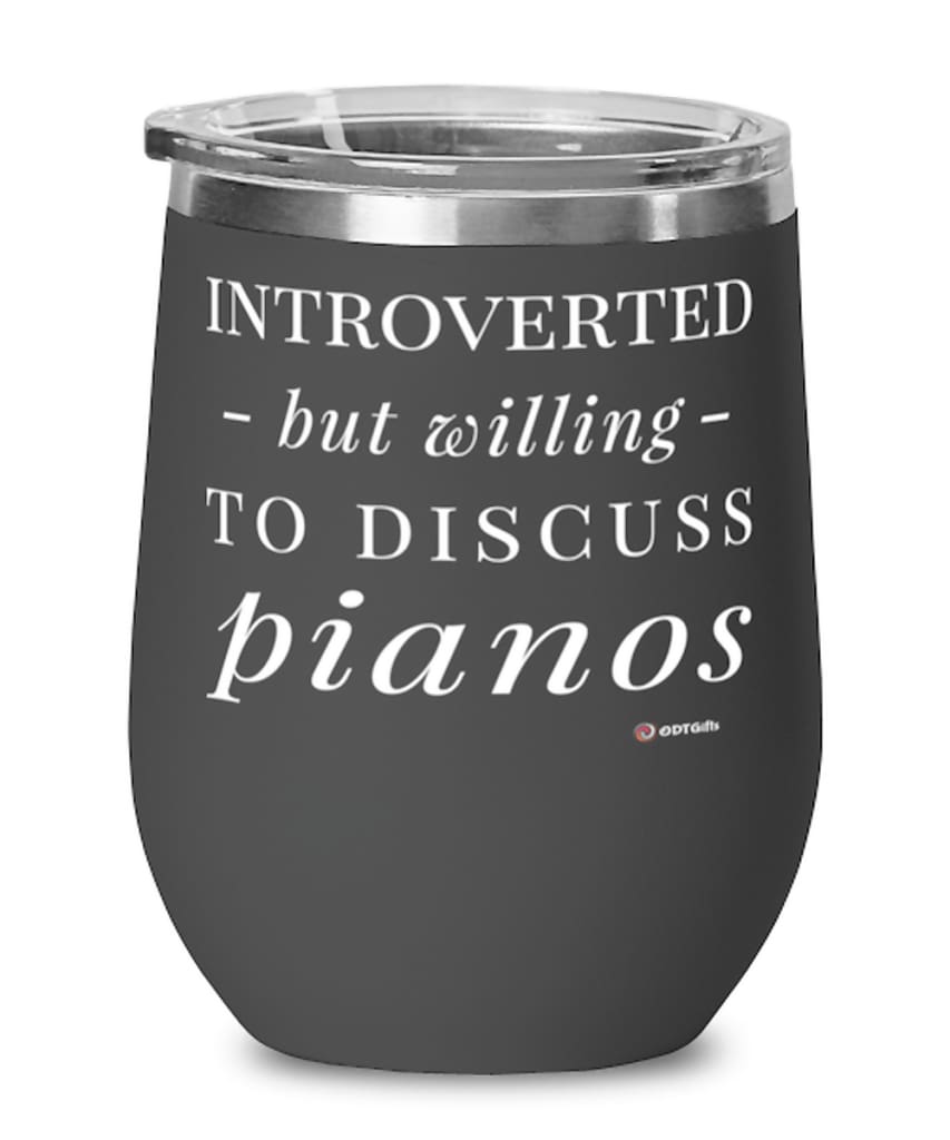 Funny Pianist Wine Glass Introverted But Willing To Discuss Pianos 12oz Stainless Steel Black