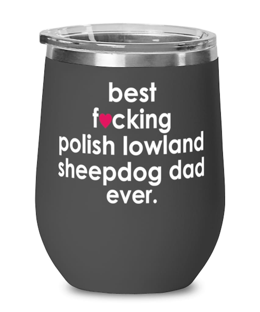 Funny Polish Lowland SheepDog Wine Glass B3st F-cking Polish Lowland Sheepdog Dad Ever 12oz Stainless Steel Black