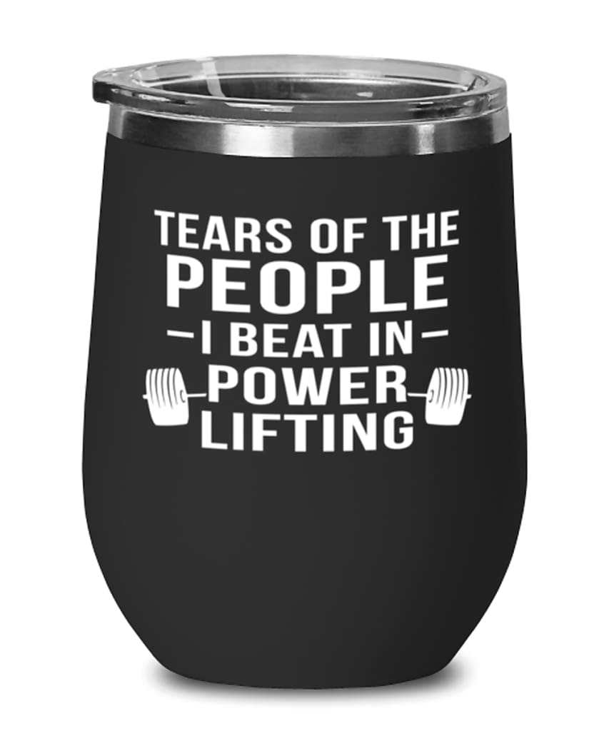Funny Powerlifter Wine Tumbler Tears Of The People I Beat In Powerlifting Stemless Wine Glass 12oz Stainless Steel