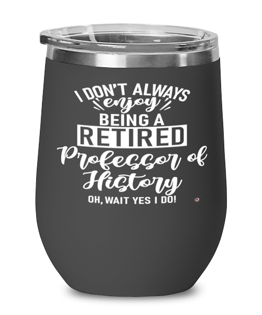 Funny Professor of History Wine Glass I Dont Always Enjoy Being a Retired Professor of History Oh Wait Yes I Do 12oz Stainless Steel Black