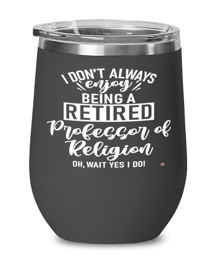 Funny Professor of Religion Wine Glass I Dont Always Enjoy Being a Retired Professor of Religion Oh Wait Yes I Do 12oz Stainless Steel Black