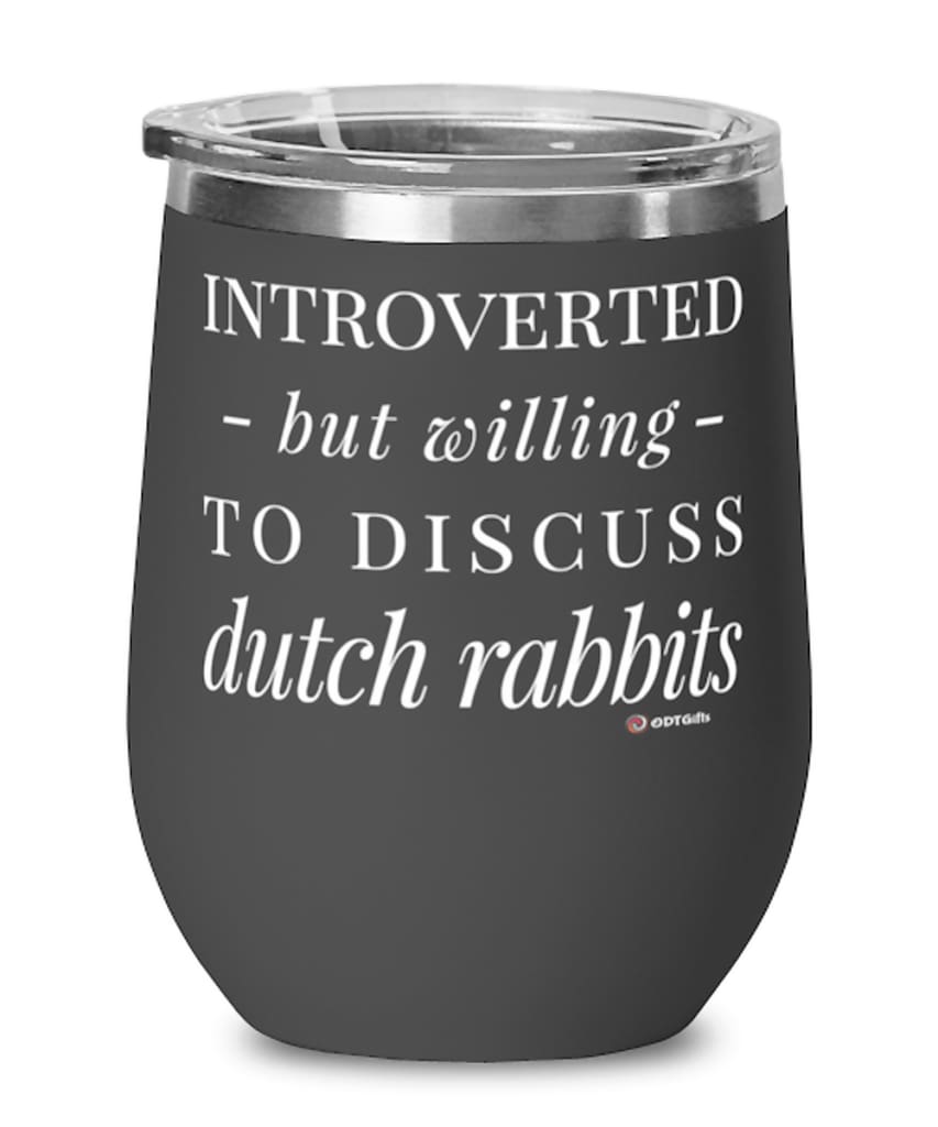 Funny Rabbit Wine Glass Introverted But Willing To Discuss Dutch Rabbits 12oz Stainless Steel Black