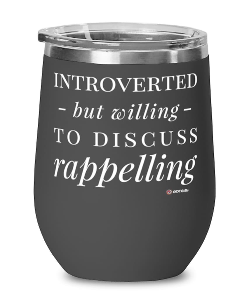 Funny Rappeller Abseiling Wine Glass Introverted But Willing To Discuss Rappelling 12oz Stainless Steel Black